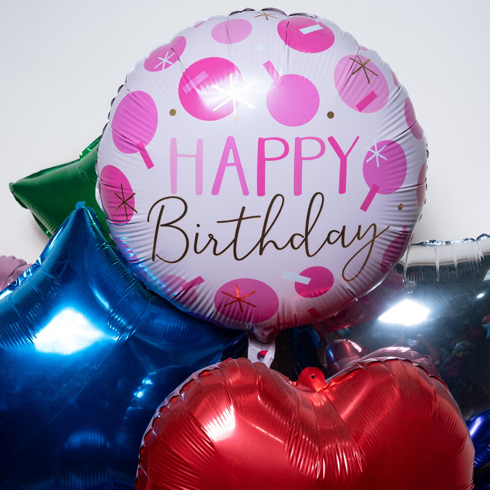 Разноцветный набор фольгированных шаров «С Днём Рождения», сердце и звезда 7505