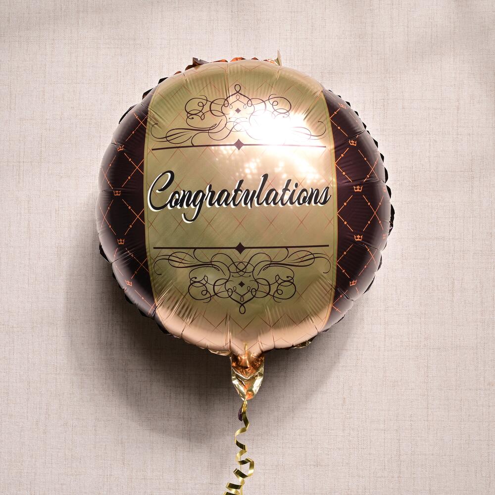 Отпразднуйте достижение кого-то этим элегантным фольгированным шаром «Поздравляем». Благодаря королевскому дизайну с замысловатыми деталями и золотой короной этот шар придаёт нотку изящества и утончённости любому поздравлению.