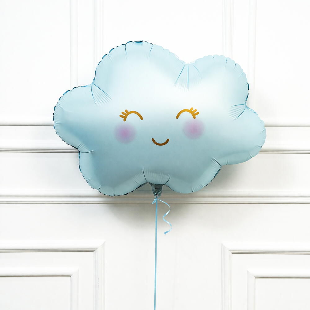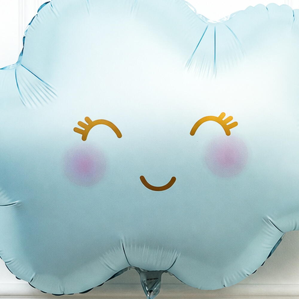 Sweet smiling cloud balloon ideal for baby shower and newborn welcome. Perfect for party decoration and surprise setups. Helium inflation lasts 8 to 10 hours.