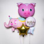 Набор фольгированных шаров милый розовый зверёк С Днём Рождения для девочки 7452