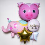 Сделайте её день рождения особенно запоминающимся с этим милым розовым набором фольгированных шаров с изображением животных. В этот очаровательный набор входят фольгированные шарики в виде розовых зверюшек, включая симпатичный шар в виде свинки и милый шар в виде слона, которые красиво сочетаются с элегантными фольгированными звёздами белого и золотого цветов, а также с нежным пастельным круглым шаром с надписью «Имениннице». Идеально подходит для праздников в стиле нежно-розовой гаммы, «принцессы» и с животными; этот набор мгновенно улучшит оформление вечеринки и фотозоны. Время полёта на гелии примерно 8–10 часов, что делает его идеальным для мероприятий в тот же день, дней рождения, празднований в честь рождения девочки и праздничного декора 🎀🎈