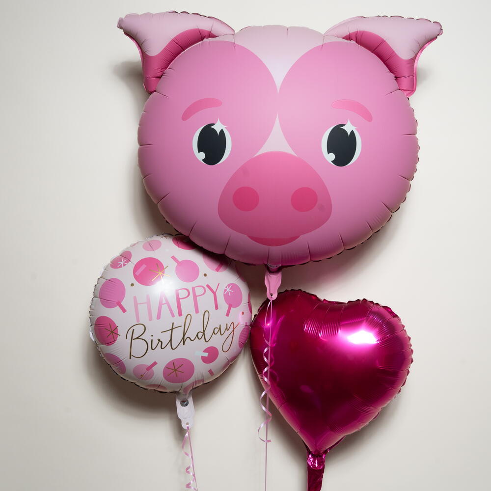 Милый розовый поросёнок С Днём Рождения Фольгированный набор шаров 7356