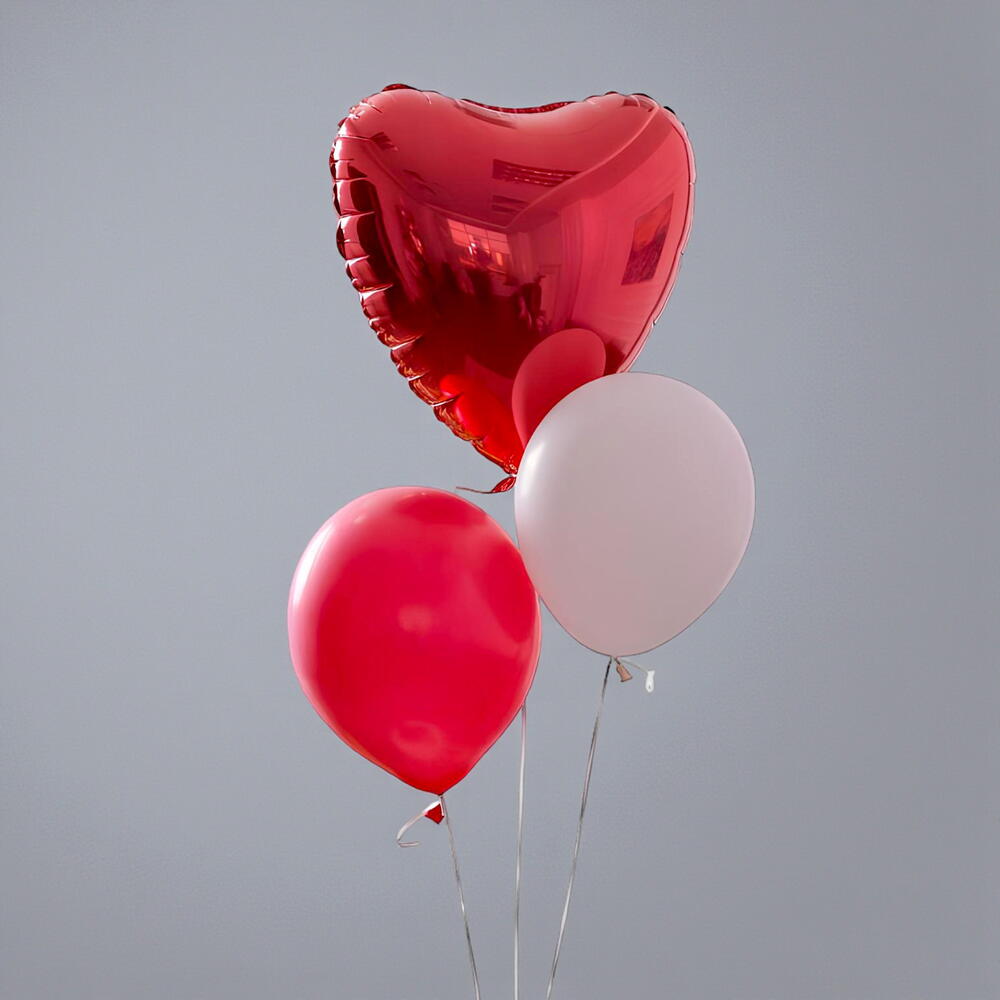 1 - Фольгированный шар в форме сердца 2 - 1 красный и 1 белый латексный шар