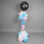 1 черный латексный шар 45 см 9 розовых латексных шаров 9 светло-голубых латексных шаров 12 см 24 белых латексных шара 12 см 1 нежно-розовый латексный шар в форме трубки 1 нежно-голубой латексный шар в форме трубки