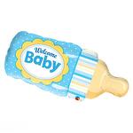 Гигантский голубой фольгированный шар-бутылочка «Добро пожаловать, малыш»