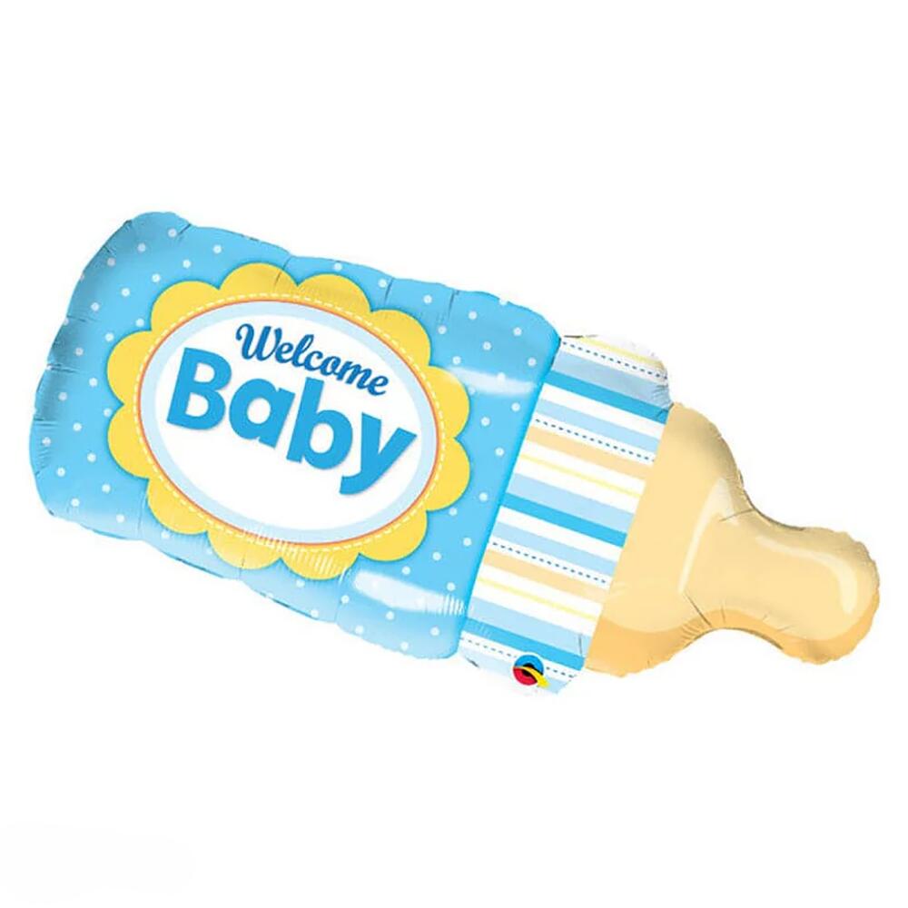 Гигантский голубой фольгированный шар-бутылочка «Добро пожаловать, малыш»