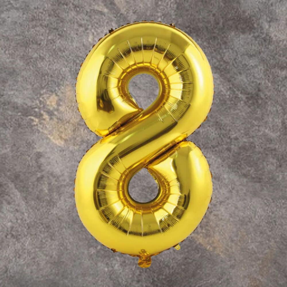 Золотой фольгированный шар-цифра 8