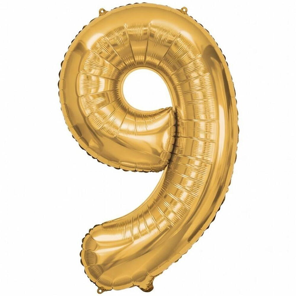 Золотой фольгированный шар-цифра 9 (заполнен гелием)