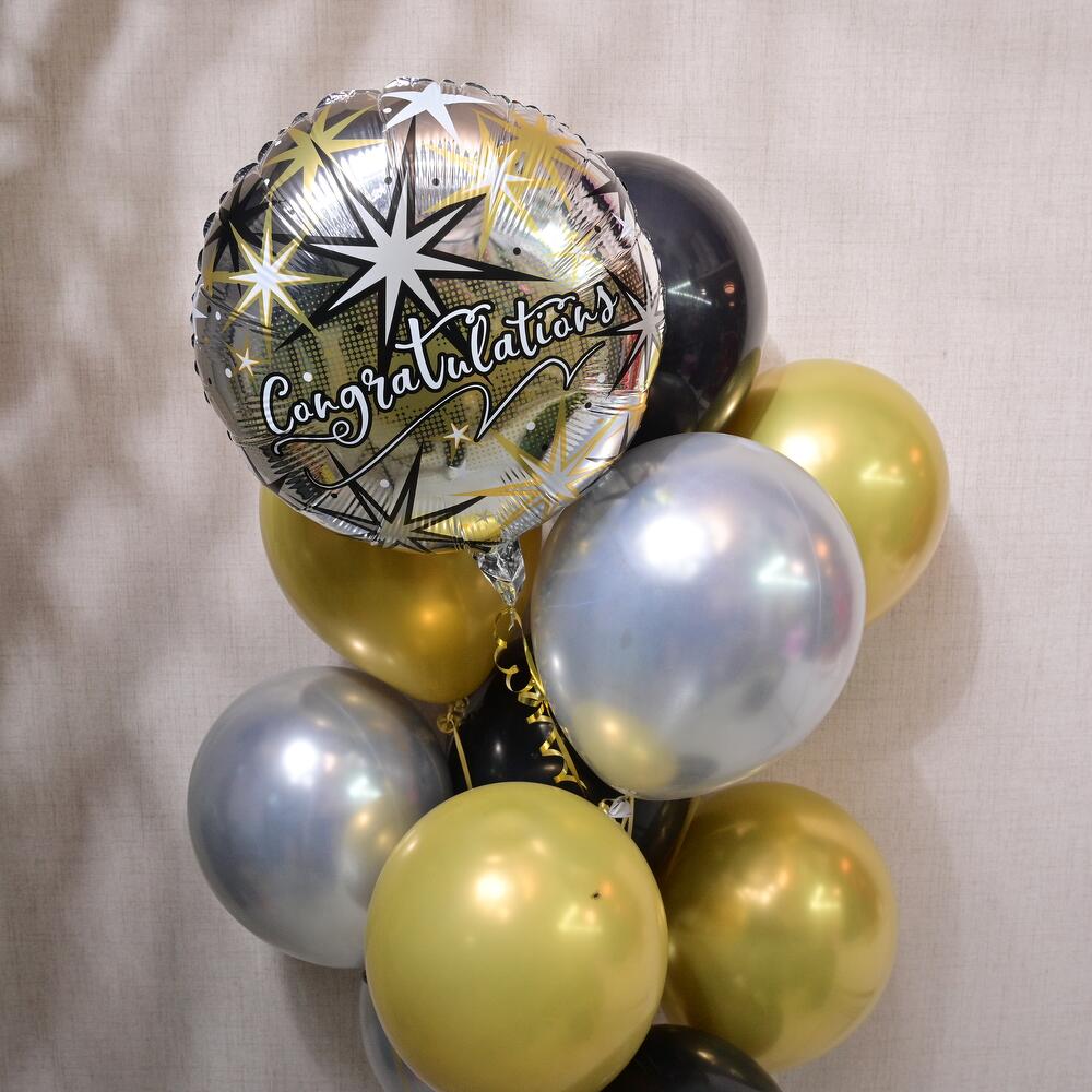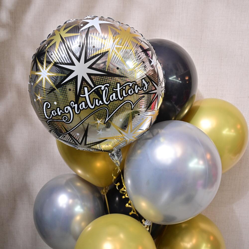 Отпразднуйте со вкусом с этим ярким набором из 13 шаров, идеальным для любого выпускного торжества. В набор входит блестящий фольгированный шар с надписью «Поздравляем», а также 12 латексных шаров в элегантных металлических оттенках. Создайте веселую и праздничную атмосферу для выпускника с этой полной композицией из шаров!