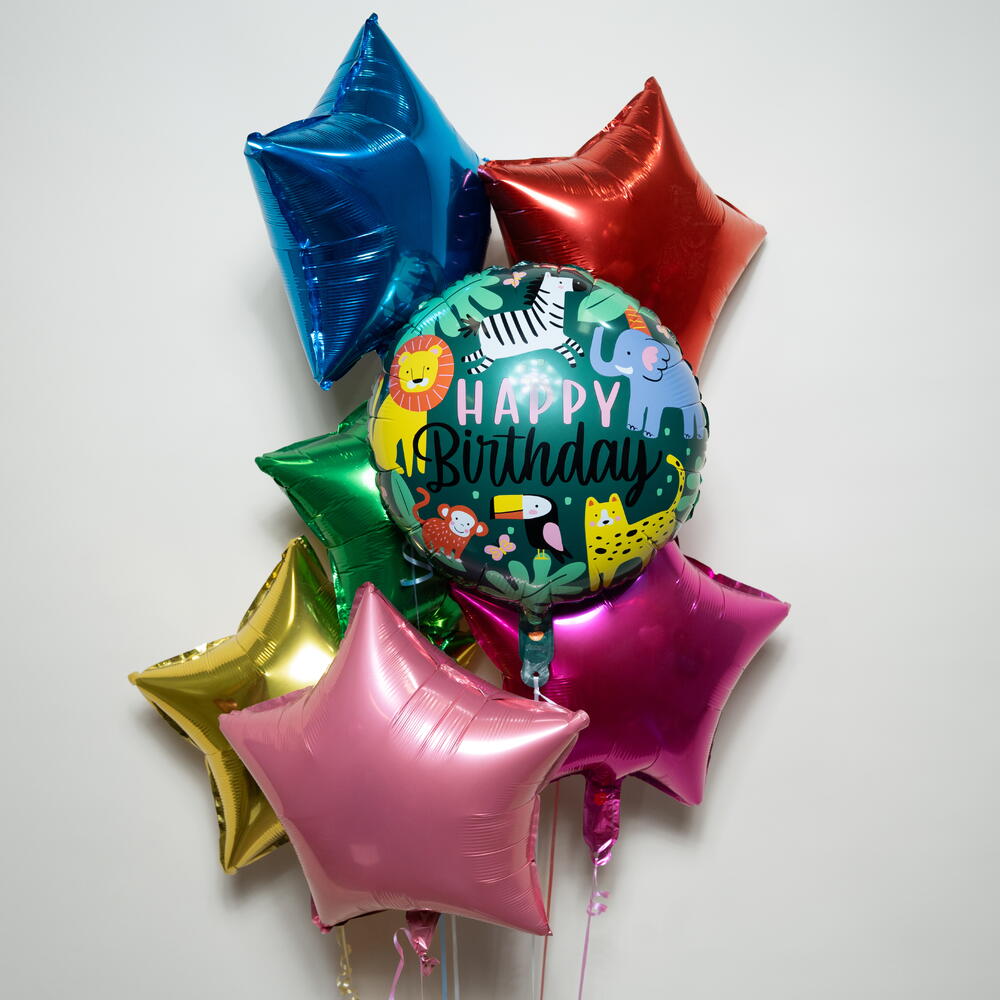 Тема «Зелёные джунгли» С Днём Рождения набор из 6 звёздных шаров 7405