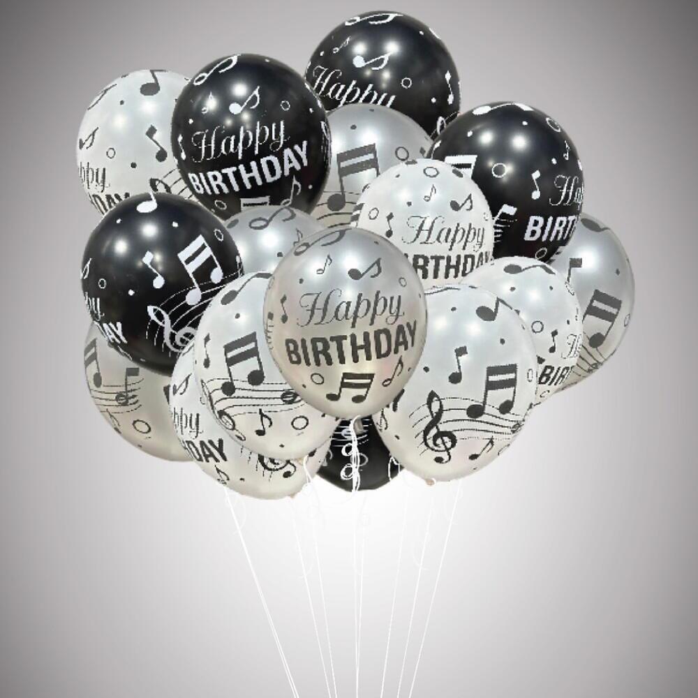 Набор из 15 латексных шаров, наполненных гелием, с поздравлениями с днем рождения. Примечание: гелия хватит на 6-7 часов.