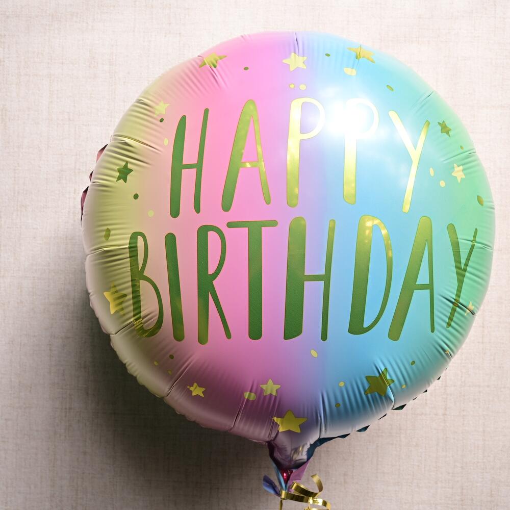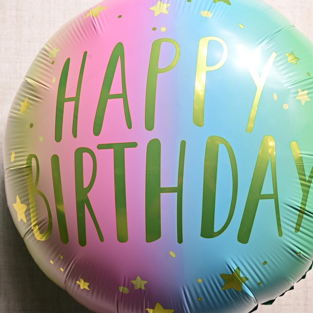 Отпразднуйте кого‑то особенного с этим весёлым шаром с надписью «Happy Birthday». Его яркие пастельные градиентные оттенки и золотые акценты в виде звёзд делают его идеальным дополнением к любой вечеринке по случаю дня рождения, создавая весёлую и праздничную атмосферу.
