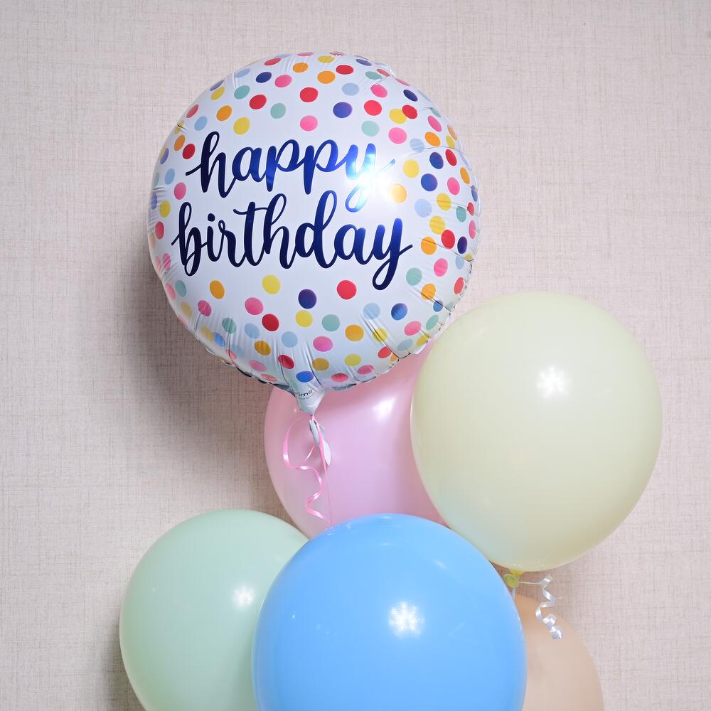 Отпразднуйте стильно с ярким набором латексных и фольгированных шаров. Наполнены гелием и держатся 8–10 часов. Латексные шарики × 6 Фольгированный шар «Happy Birthday» × 1