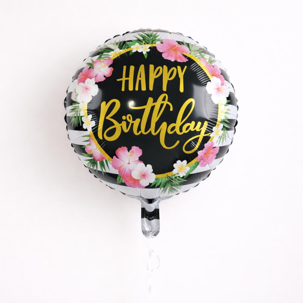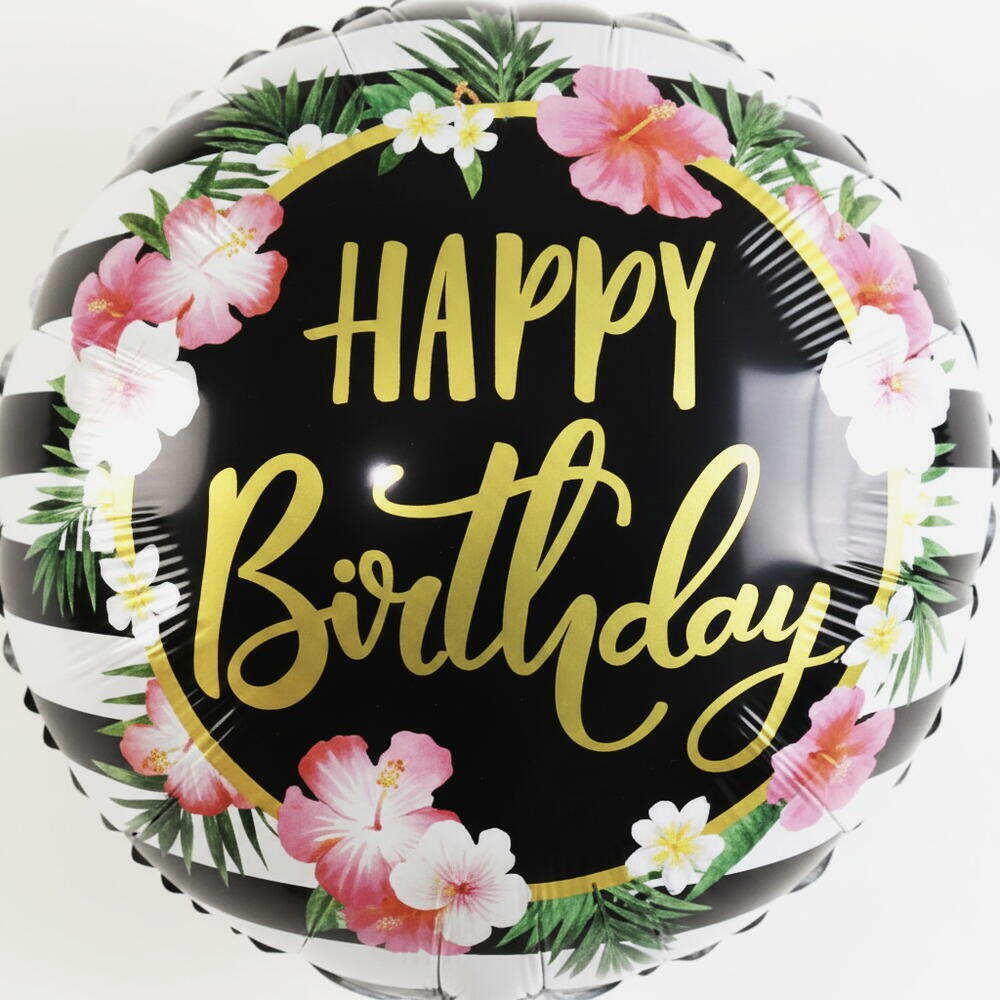 Фольгированный шар «С Днём Рождения» с цветочным рисунком