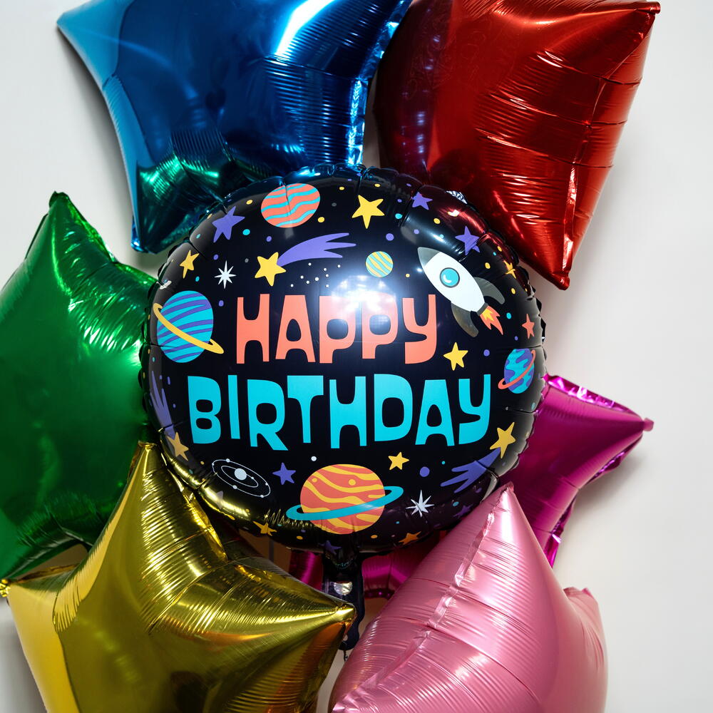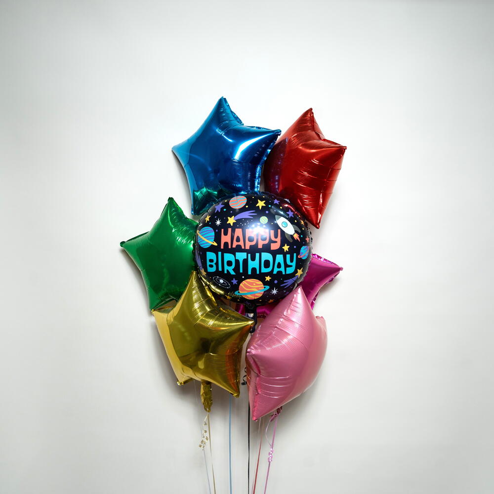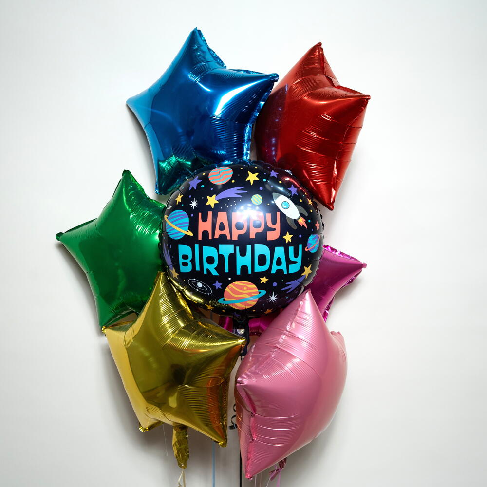 Набор из 6 фольгированных шаров в форме звезды на космическую тему «С Днём Рождения» 7403