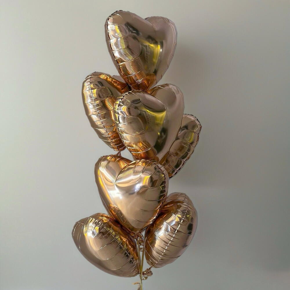 HELIUM BALLOONS 7 ROSE GOLD HEARTS