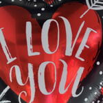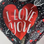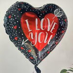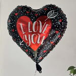 Черно-красный фольгированный шар в форме сердца с надписью «I Love You». Идеально подходит в качестве дополнения к букетам, тортам или подарочным наборам на День святого Валентина и для романтических сюрпризов.