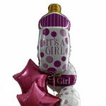 Букет из гелиевых шаров «Its a Girl» в розовых тонах Стильно объявите о своем рождении малыша с этим очаровательным букетом гелиевых шаров «Its a Girl»! Этот набор, выполненный в ярких розовых и фиолетовых тонах, идеально подойдет для вечеринки в честь рождения ребенка, объявления пола ребенка или просто для встречи новорожденного. В набор входит: • 1 большой фольгированный шар в форме стильной бутылочки с розовым и фиолетовым горошком и четкой надписью «ITS A GIRL» (Это девочка). • 2 круглых/овальных фольгированных шара в розово-фиолетовом горошке и полосках, каждый из которых символизирует «Its a Girl» (Это девочка). • 2 ярких пурпурных фольгированных шара в форме звезд, которые добавят ярких праздничных красок. Все шары наполнены гелием и поставляются с ленточками в тон, готовы к полету и станут прекрасным украшением вашего праздника!