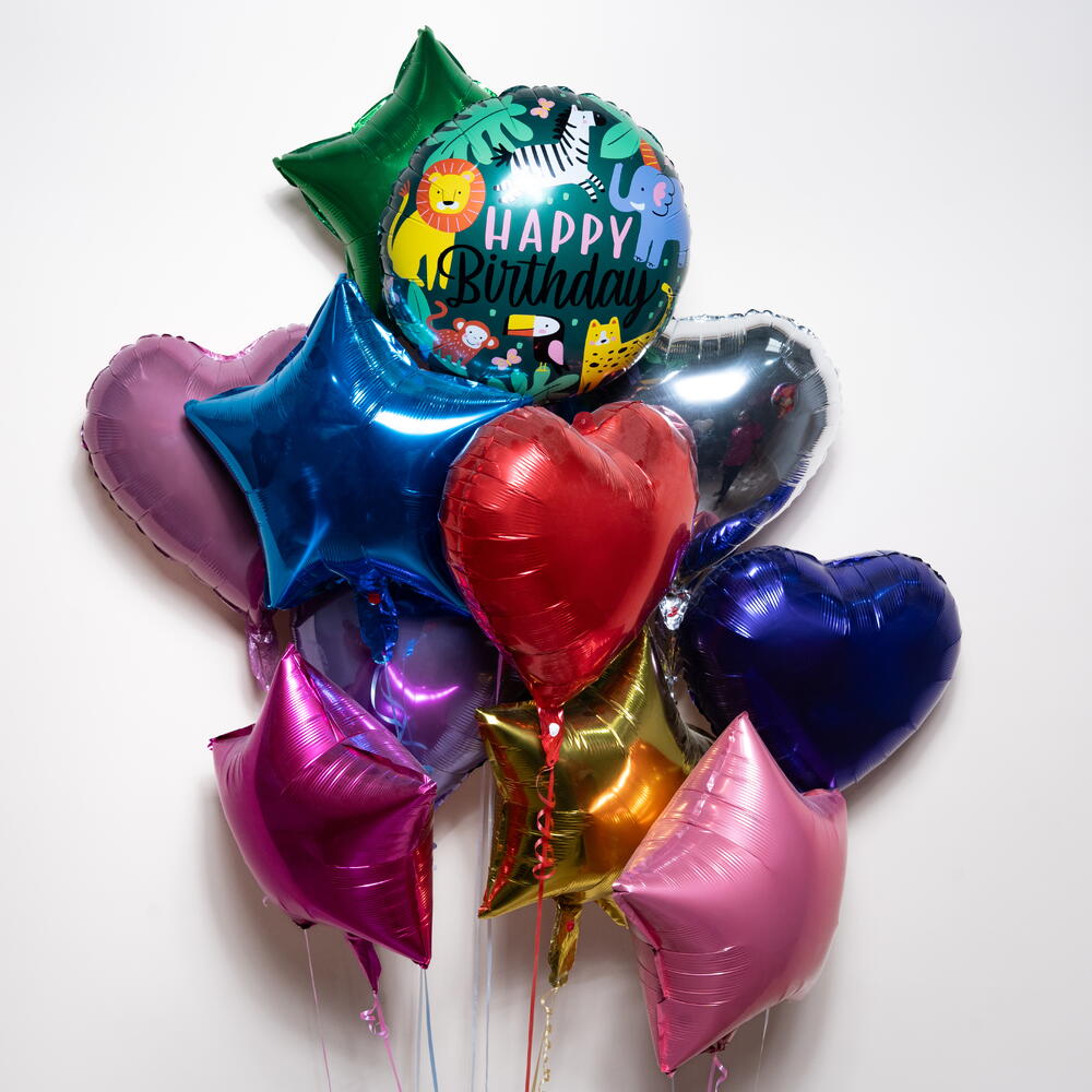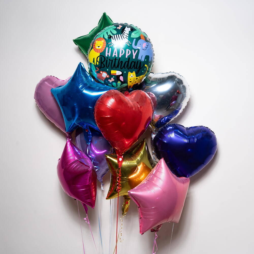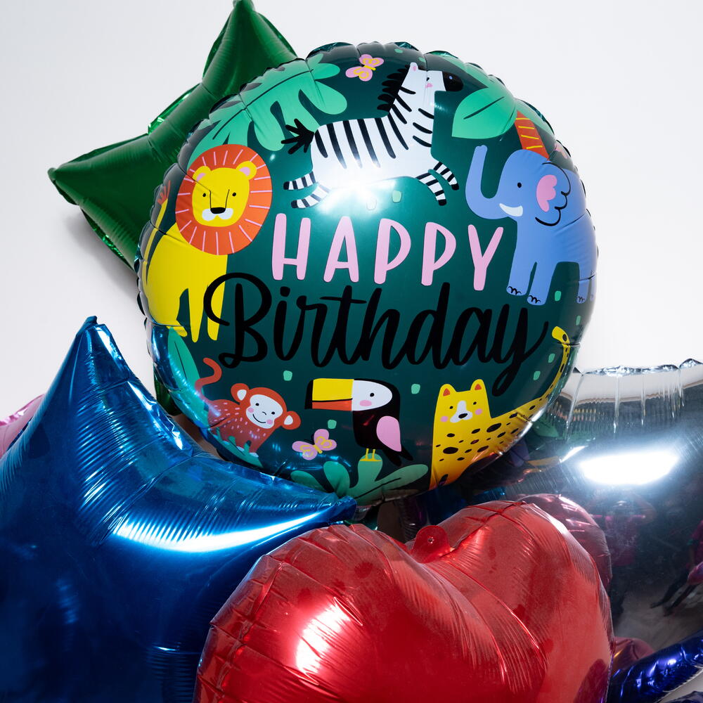 Привнесите дикое веселье в ваш праздник с этим ярким набором воздушных шаров «С днем рождения» в стиле джунглей. В набор входит игривый воздушный шар с надписью «С днем рождения» в стиле джунглей, окруженный разноцветными фольгированными шарами в форме сердечек и звезд. Эта композиция идеально подходит для детских дней рождения и вечеринок в стиле джунглей. Сочетание ярких металлических цветов и веселых изображений животных создает захватывающую, праздничную атмосферу, идеально подходящую для украшения вечеринки, фотозон или в качестве сюрприза. Что входит в комплект: 🎂 1 фольгированный воздушный шар «С днем рождения» в стиле джунглей ⭐ 5 фольгированных шаров в форме звезд ❤️ 5 фольгированных шаров в форме сердечек Все шары наполнены гелием и красиво оформлены для демонстрации. Время полета в гелии: приблизительно 8–10 часов. Идеально подходит для празднования дня рождения в стиле джунглей, сафари или животных.