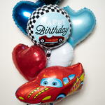 Набор фольгированных воздушных шаров «Молния Маккуин» на день рождения – 5 шаров в форме сердца 7389