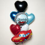 Отпразднуйте веселый день рождения с этим набором фольгированных воздушных шаров в виде машинки Молнии Маккуина (7 шаров), идеально подходящим для детских вечеринок и праздников в автомобильной тематике. Включает 1 большой фольгированный шар в виде машинки Молнии Маккуина, 1 круглый фольгированный шар с надписью «С днем рождения» и 5 фольгированных шаров в форме сердца красного, синего, светло-голубого, белого и черного цветов. Эта яркая и игривая композиция из фольгированных шаров создаст захватывающее праздничное оформление и отличные моменты для фотосессий. Время полета в гелии составляет приблизительно 8–10 часов, что делает его идеальным для празднования в тот же день 🎈🚗