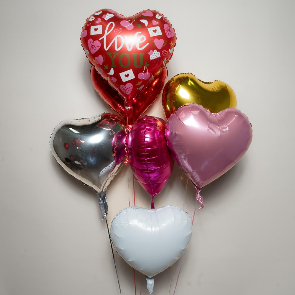 Красиво отпразднуйте любовь с этим набором фольгированных шаров Love You Hearts (6 шаров в форме сердца), идеально подходящим для годовщин, Дня святого Валентина, предложений руки и сердца и романтических сюрпризов. Эта элегантная композиция из гелиевых шаров включает 6 фольгированных шаров в форме сердца красного, золотого, розового, серебристого, ярко-розового и белого цветов, создавая яркое и эффектное оформление. Идеально подходит для декора комнаты, организации сюрпризов и романтических фотосессий. Обеспечивает время полёта на гелии примерно 8–10 часов, идеально подходит для празднований в тот же день ❤️🎈