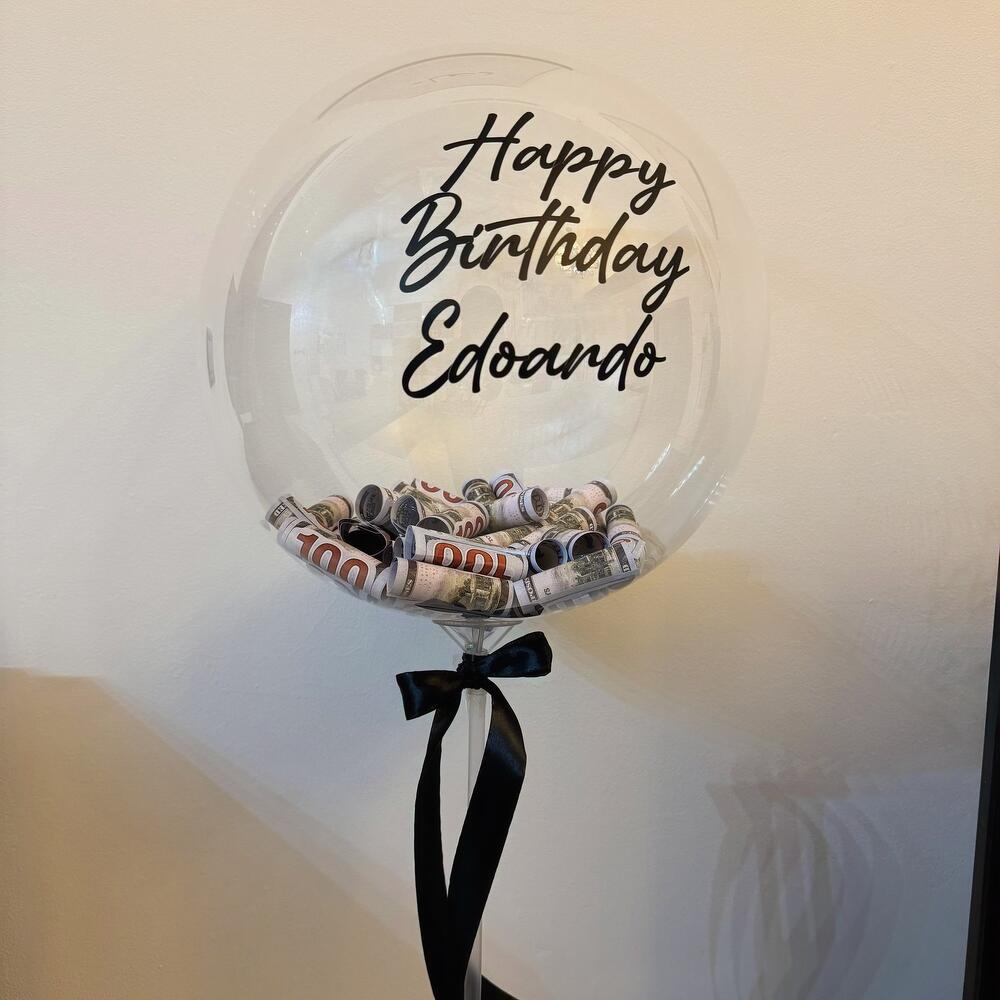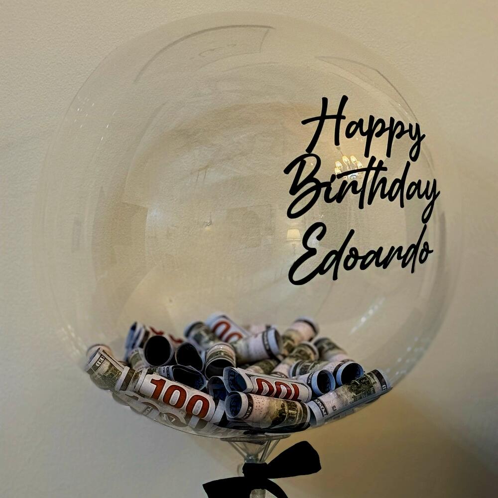 Luxury Fake Money Filled Birthday Balloon – Custom Name - Inscription Balloon - Personalised Bubble Balloon