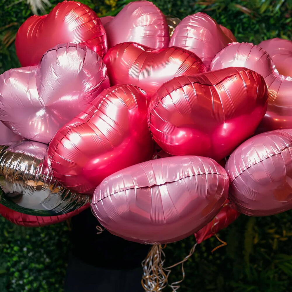Гелиевые шары премиум-класса в форме сердца диаметром 18 дюймов. Набор из 15 фольгированных шаров прекрасно дополнит любой ваш праздник.
