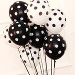 Добавьте нотку современной элегантности и игривого очарования любому празднику с этим набором из 8 высококачественных латексных шаров классического чёрно-белого цвета, украшенных весёлым горошком. Эти шары идеально подходят для дней рождения, тематических вечеринок, юбилеев или других торжественных случаев. Они легко надуваются, прочные и долговечные. Используйте их для создания эффектных букетов из воздушных шаров, декоративных арок или центральных элементов стола, которые придадут вашему празднику изысканную, но в то же время весёлую атмосферу. Обратите внимание: максимальное время полёта гелиевых латексных шаров составляет около 6 часов.
