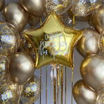 Sometimes it is so important not in words but in deeds to show all the love that you feel! And here our balloons will come to your aid 1 foil gold star 30 with white inscription, with gold curtains and satin bow, with weight 2 bunches with weights: (with gold ribbons) 5 latex chrome gold balloons 12 5 latex clear balloons 12 with square gold confetti Under the ceiling: (with gold curtains) 5 latex chrome gold balloons 12 5 latex clear balloons 12 with square gold confetti You can change the inscription to your own. Product color may slightly vary due to photographic lighting sources or your monitor settings. All latex balloons are treated with hi-float for long flight. Also, the customer can be offered a replacement for a similar product.