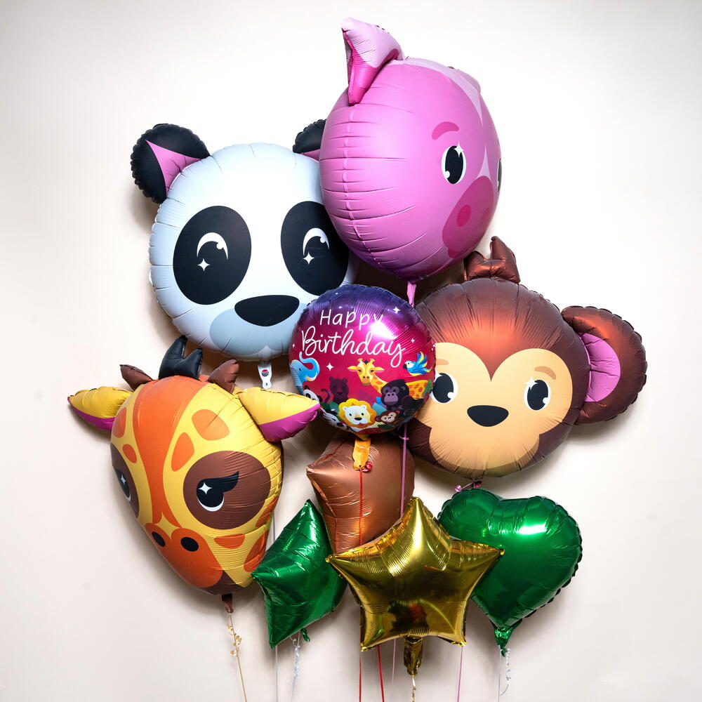 Набор из 9 фольгированных воздушных шаров «Panda Friends Jungle Theme Happy Birthday Party» — это весёлая и игривая композиция, призванная привнести атмосферу джунглей в празднование дня рождения. Этот яркий набор включает в себя 1 круглый фольгированный шар с надписью «С днём рождения» и иллюстрациями джунглей, а также 8 тематических фольгированных шаров с изображениями очаровательных животных и декоративными элементами. В набор воздушных шаров входит (всего: 9 шаров): 1 × Фольгированный шар в виде мордочки панды 1 × Фольгированный шар в виде мордочки свиньи 1 × Фольгированный шар в виде мордочки обезьяны 1 × Фольгированный шар в виде мордочки жирафа 1 × Круглый фольгированный шар с надписью «С днем рождения» с принтом джунглей 1 × Фольгированный шар в виде золотой звезды 1 × Фольгированный шар в виде зеленой звезды 1 × Фольгированный шар в виде зеленого сердца 1 × Фольгированный шар в виде коричневой звезды Идеально подходит для дней рождения в стиле джунглей, детских вечеринок, оформления в стиле животных, детских дней рождения и фотозон. Этот красочный букет из фольгированных шаров мгновенно добавит очарования и радости любому празднику. Изготовленные из высококачественной фольги, шары держатся в воздухе примерно 8–10 часов, что делает их идеальными для мероприятий в тот же день, сюрпризов на день рождения и праздничного оформления вечеринки 🎈🌿🐼