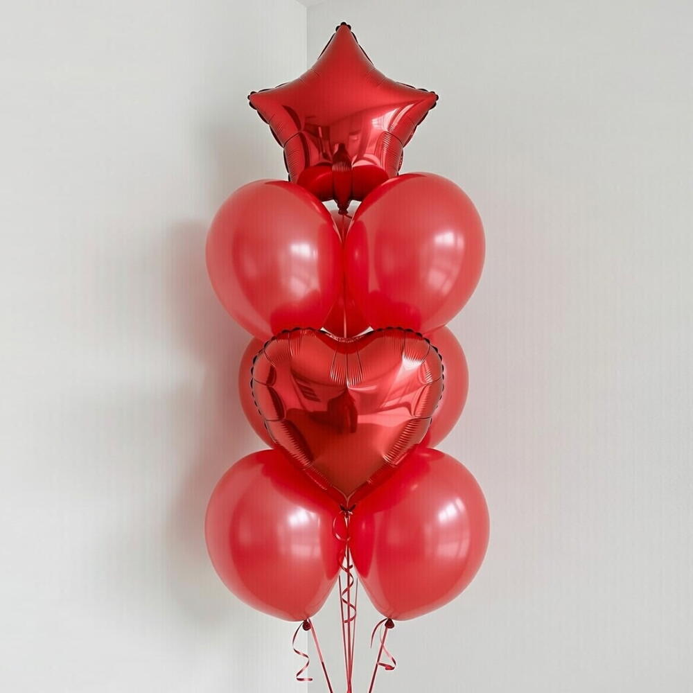Букет воздушных шаров «Рубиново-красные звезды и сердца»
