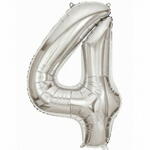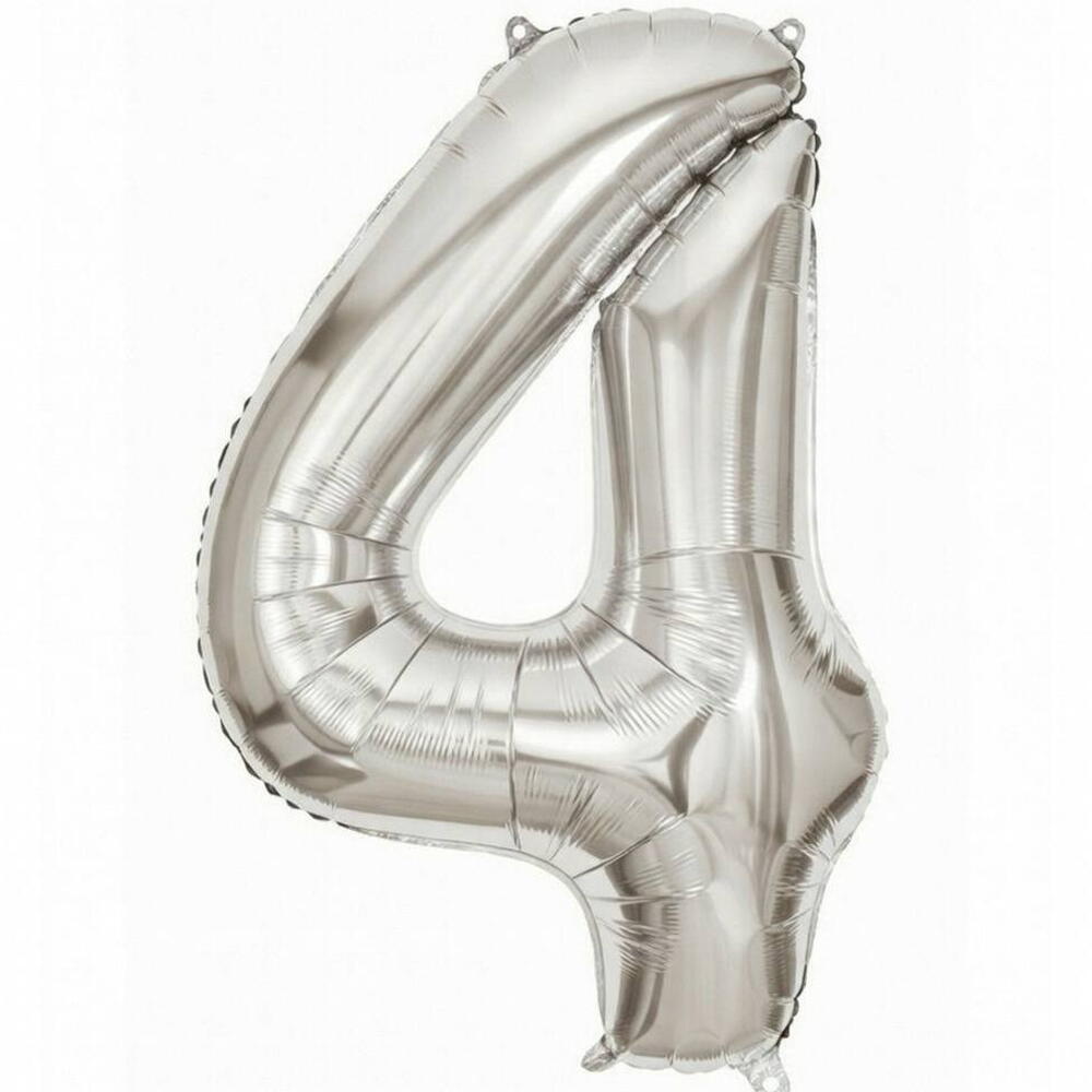 Серебряный фольгированный шар с цифрой четыре (наполнен гелием)