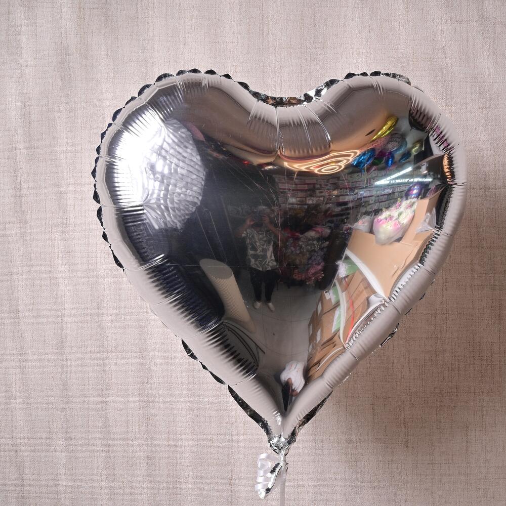 Элегантный серебряный гелиевый шар в форме сердца. Шары наполнены гелием и имеют утяжелитель в нижней части. Гелий держится 8-10 часов.