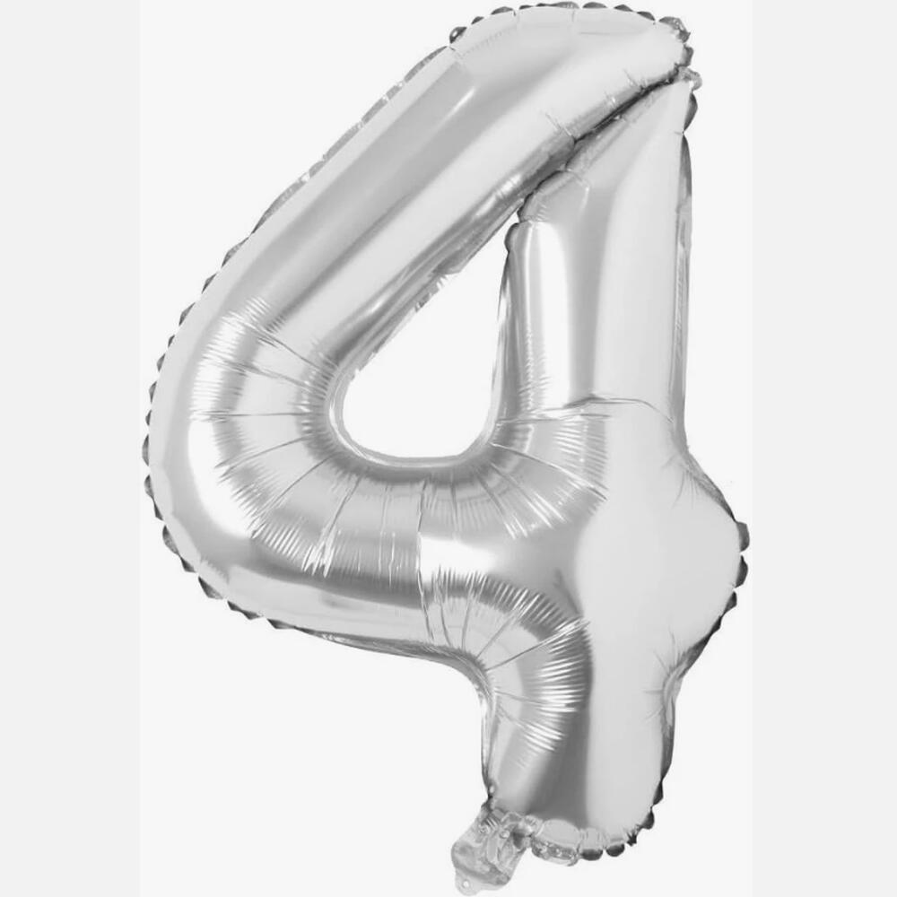 Гелиевый воздушный шар «Серебряная цифра четыре», 40 дюймов