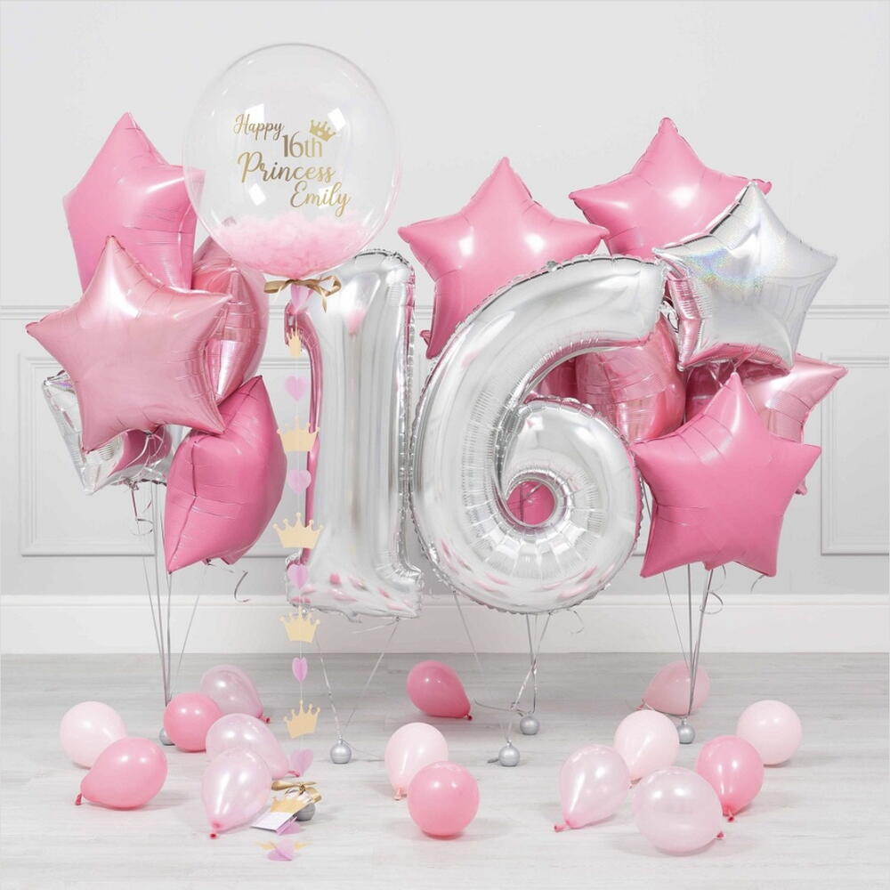 Silver Pink Birthday Balloons Package