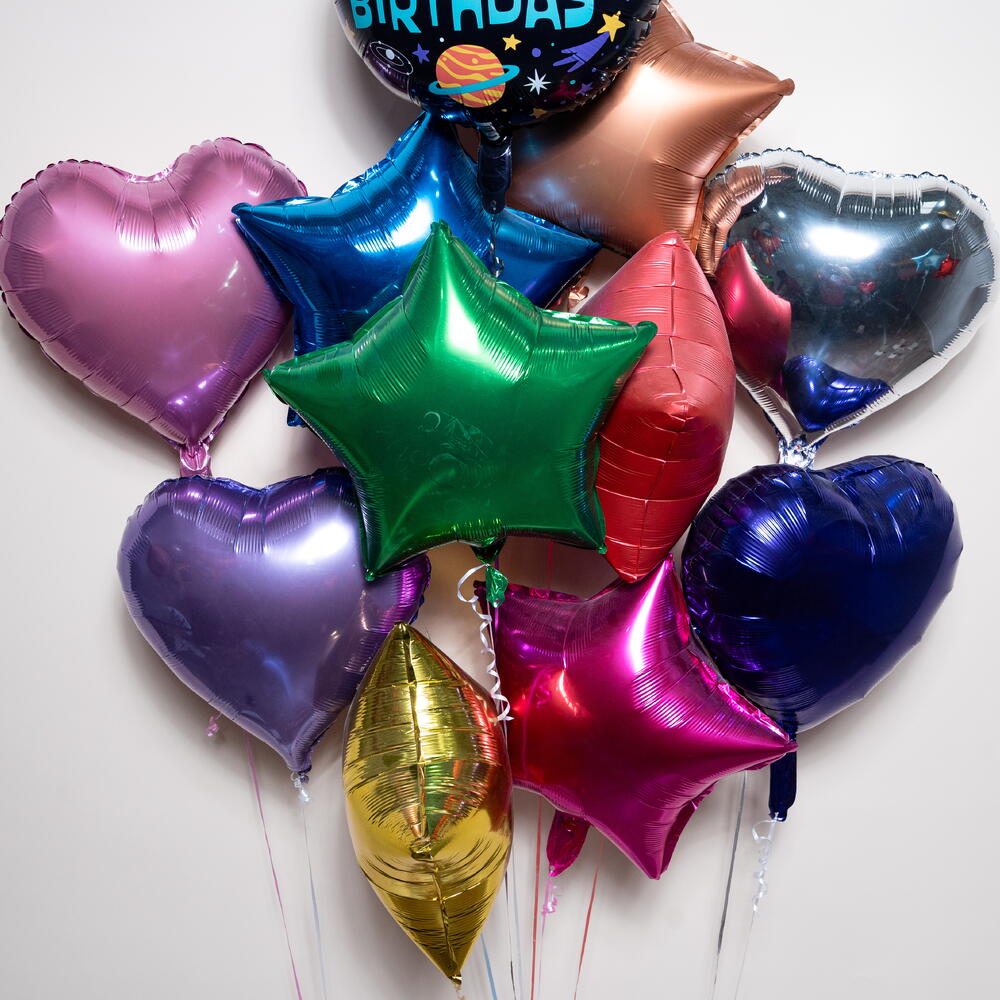 Набор фольгированных шаров «Космическая тема: Happy Birthday, сердца и звёзды» (11 шаров) — это весёлая и яркая композиция из шаров, созданная, чтобы добавить волшебный космический оттенок в празднование дня рождения. В набор входят блестящие металлические цвета: розовый, фиолетовый, синий, зелёный, красный, золотой, серебряный и бронзовый, создающие яркую и эффектную композицию, идеально подходящую для детских дней рождений, вечеринок в космической тематике, празднований для мальчиков и девочек, оформления классов и фотозон. Сочетание сердец и звёзд придаёт шарм и динамику, делая композицию подходящей для домашнего декора, сюрпризов на вечеринках и праздничных оформлений. Изготовленные из высококачественной фольги, все шары имеют время полёта на гелии примерно 8–10 часов, что делает их идеальными для мероприятий в тот же день, дней рождений и радостных торжеств 🎈🚀✨