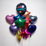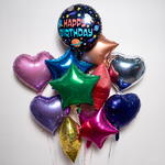Космическая тема С Днём Рождения Сердца и звёзды Набор фольгированных шаров 7474