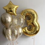 This magnificent bouquet will be a wonderful addition to any special event or special moment in your life. 1 foil gold number balloon 40” with weight Bunch with weight: 1 foil gold star 18” 3 latex chrome gold balloons 12” 3 latex clear balloons 12” with sparkle and round gold confetti You can change the inscription to your own. Product color may slightly vary due to photographic lighting sources or your monitor settings. All latex balloons are treated with hi-float for long flight. Also, the customer can be offered a replacement for a similar product.