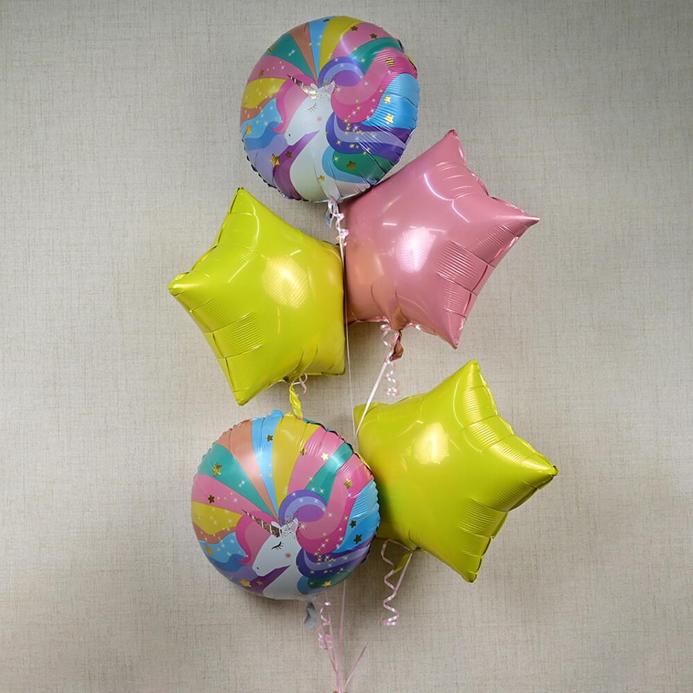 Набор из 5 фольгированных шаров, наполненных гелием. Гелий держится 6-8 часов.