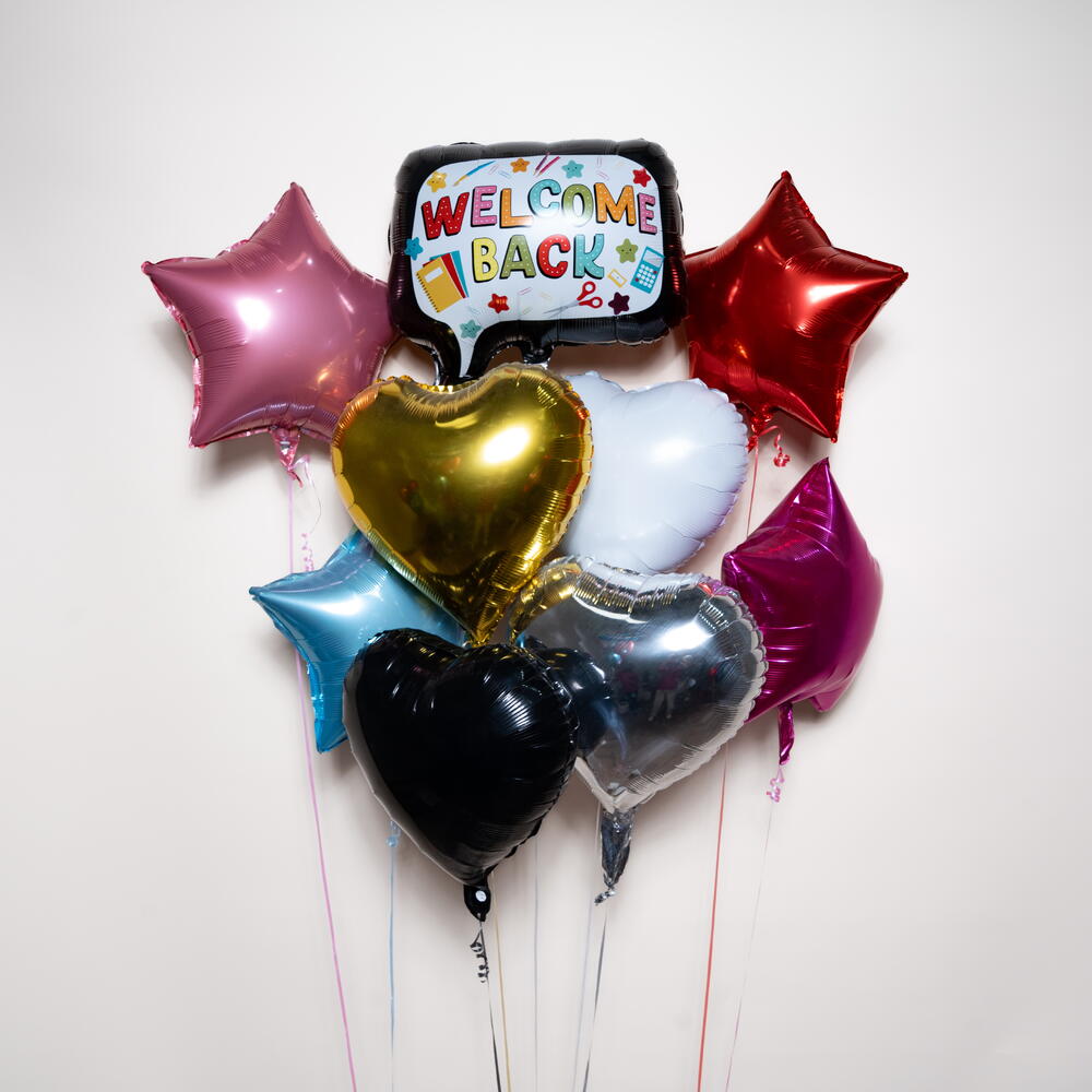 Создайте теплую и радостную атмосферу с помощью этого стильного набора фольгированных воздушных шаров «Добро пожаловать обратно», идеально подходящего для возвращения домой, школьных мероприятий, неожиданных поздравлений и праздничного оформления. Эта яркая композиция из воздушных шаров сочетает в себе блестящие сердечки и звездочки с забавным шаром с напечатанным сообщением, создавая привлекательное зрелище. В набор входят (всего 9 шаров): 1 круглый фольгированный шар с надписью «Добро пожаловать обратно» (многоцветный дизайн) 4 фольгированных шара в форме звезды светло-розового, темно-розового, красного и светло-голубого цветов 4 фольгированных шара в форме сердца золотого, черного, серебряного и белого цветов Сочетание ярких и металлических цветов добавляет праздничного и элегантного штриха, делая этот букет из воздушных шаров идеальным для фотозон, украшения комнат, приветствий в офисе и неожиданных доставок. Все шары изготовлены из высококачественной фольги и держатся в воздухе примерно 8–10 часов, идеально подходящих для праздничных мероприятий и торжеств в тот же день 🎈✨