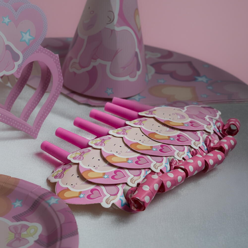 Отпразднуйте стильно с этим забавным набором для вечеринки в стиле «Baby Girl»! Изготовленный из высококачественной бумаги, этот набор включает всё необходимое для весёлого праздника — 6 бумажных тарелок, 6 праздничных колпачков, 6 бумажных стаканчиков, 6 свистков, 6 трубочек и 6 праздничных масок. Яркий, красочный и простой в использовании, он идеально подходит для детских дней рождения и вечеринок в спортивном стиле.