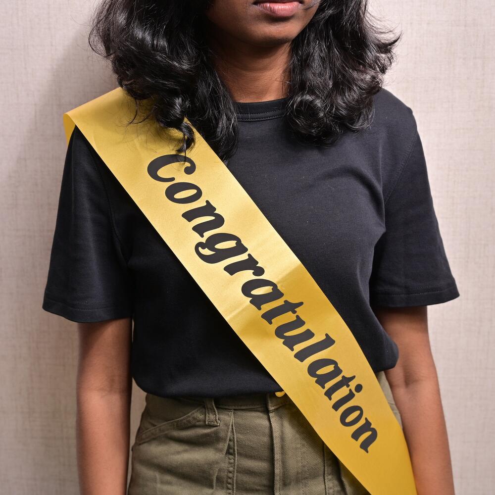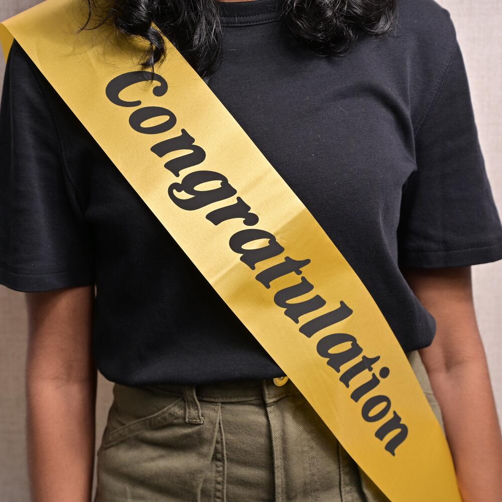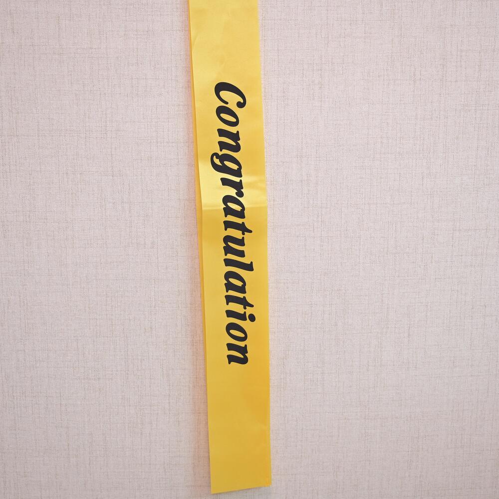 Отметьте особое событие с яркой и эффектной лентой «Congratulation». Изготовленная из высококачественного атласного материала, эта лента украшена крупной черной надписью «Congratulation», идеально подходящей для придания шарма любому празднику, включая выпускные, повышения и другие важные вехи.