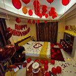 Создайте праздничное настроение с этим великолепным набором декоративных предметов, тщательно подобранных, чтобы задать атмосферу любого торжества. Ощутите изысканную смесь нежных искусственных и свежих цветов, эстетично оформленных, чтобы привлекать внимание. В набор входит 10 шаров в форме сердца и 25 свечей, готовых осветить ваш особенный день. Магия усиливается благодаря щедрому рассыпанию 1000 лепестков роз, создающих атмосферу романтического вечера. Центральным элементом является насыщенный, аппетитный торт, аккуратно дополненный большим букетом свежих роз, который наверняка станет центром внимания. Дополняют очарование декорации из шаров с надписями «Happy Anniversary», «Love» и «Be Mine», которые прекрасно передают ваши чувства. Создайте незабываемые моменты с этим набором декораций, продуманным, чтобы удовлетворить ваши праздничные потребности.