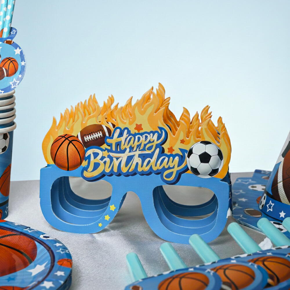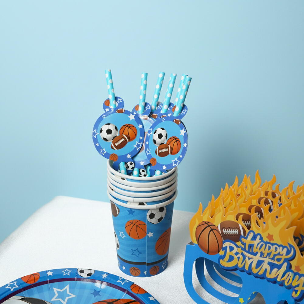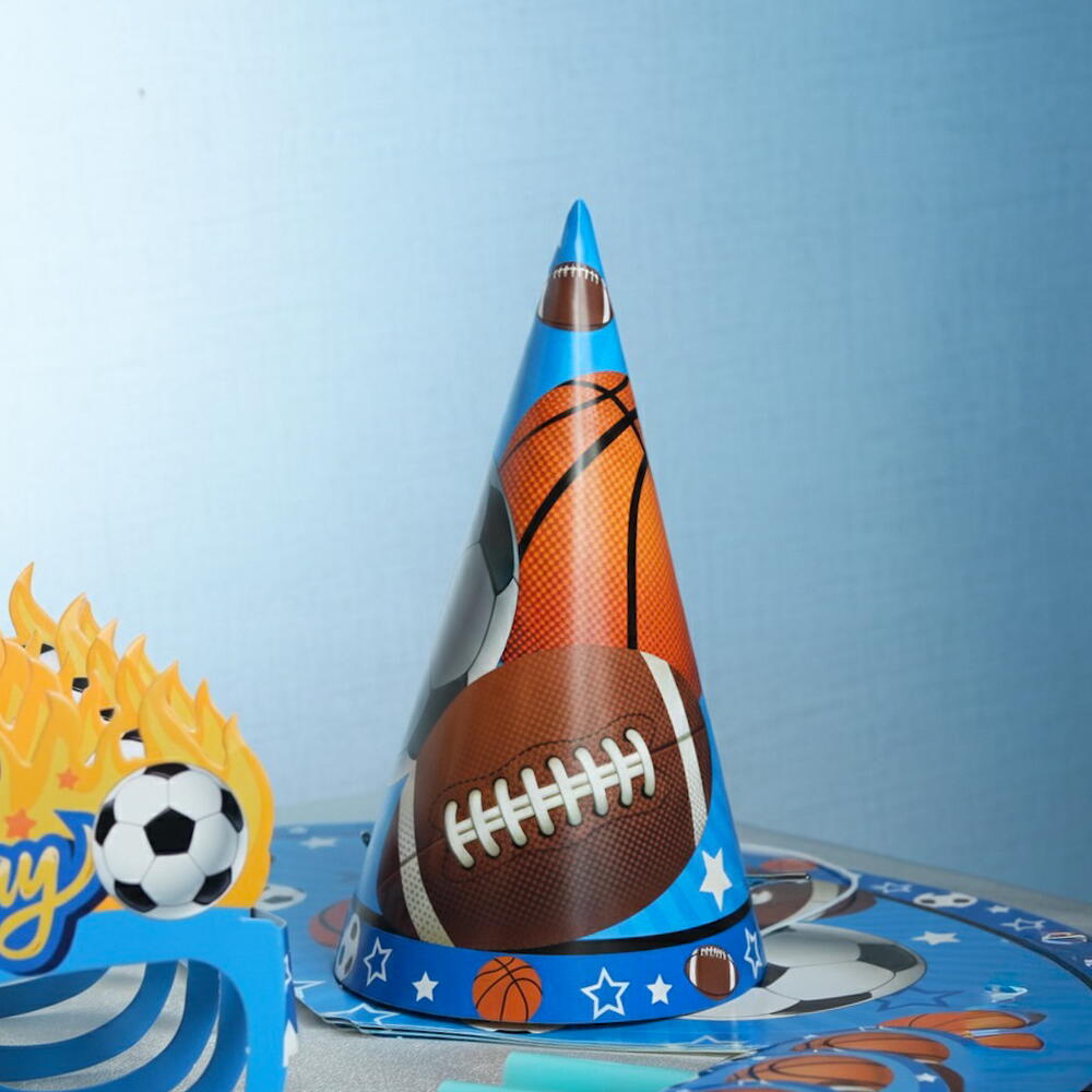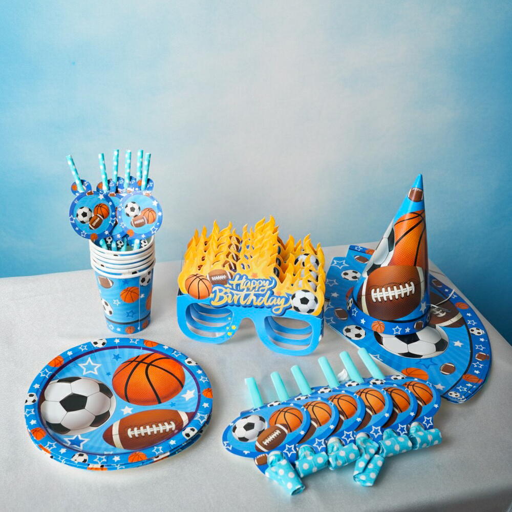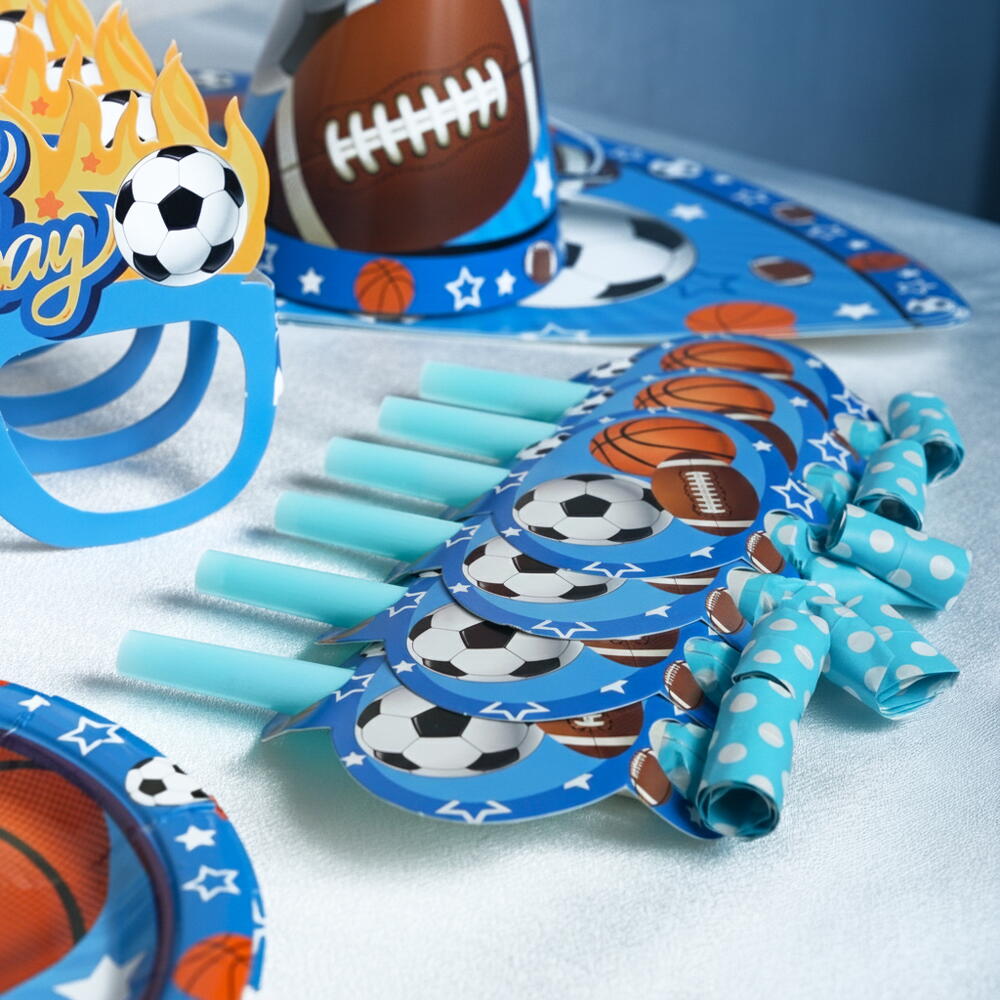 Отпразднуйте стильно с этим веселым набором для вечеринки в спортивном стиле! Изготовленный из высококачественной бумаги, этот набор включает всё, что нужно для оживлённого праздника — 6 бумажных тарелок, 6 праздничных колпачков, 6 бумажных стаканчиков, 6 свистков, 6 трубочек и 6 праздничных масок. Яркий, красочный и простой в использовании, он идеально подходит для детских дней рождения и вечеринок на спортивную тему.