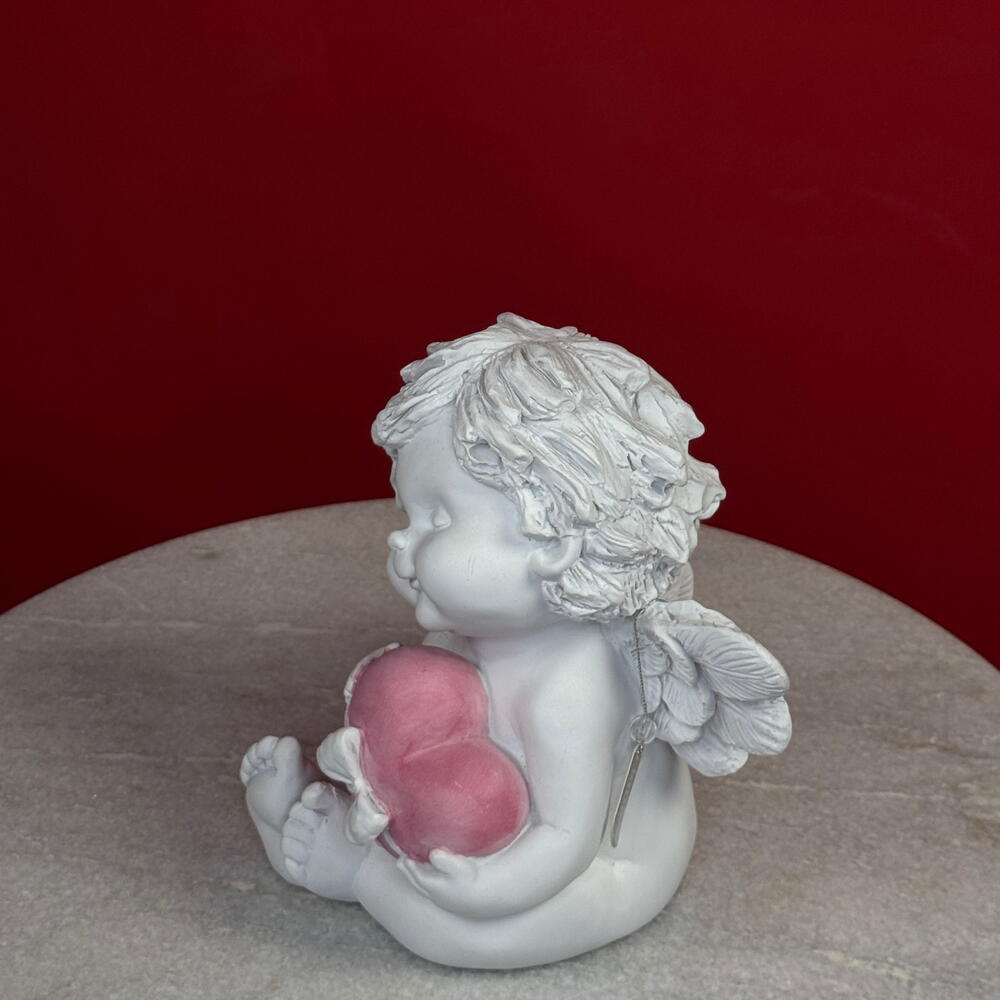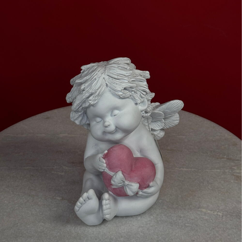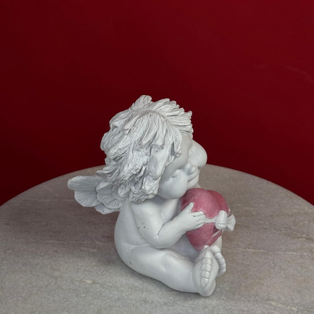 Милое керамическое украшение с изображением сидящего ангелочка, нежно обнимающего сердечко. Идеально для рождественского декора дома.