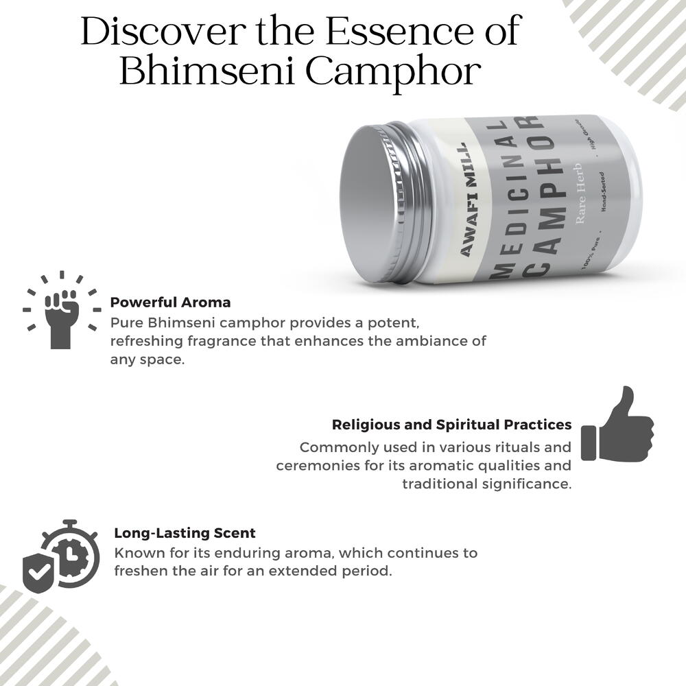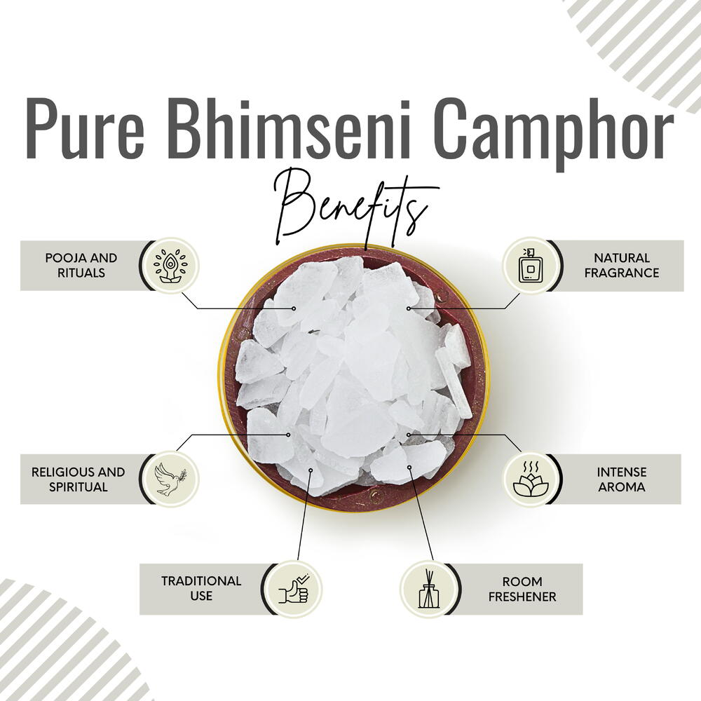 Чистая камфара поставляется непосредственно из Индии и может быть отнесена к первому сорту а+ как pacha karpooram. Эта камфара - символ качества и чистоты, отражающий суть богатых индийских традиций. Тщательно отбирается вручную и обрабатывается в соответствии с самыми высокими стандартами Чистая камфора не содержит примесей, добавок или синтетики, что позволяет вам наслаждаться истинным и неизменным ароматом.