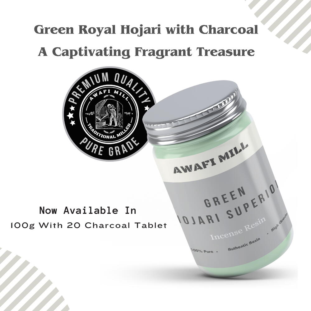 AWAFI MILL Frankincense Green Royal Hojari Superior | Треугольная таблетка древесного угля — флакон 100 грамм с 20 кусочками древесного угля