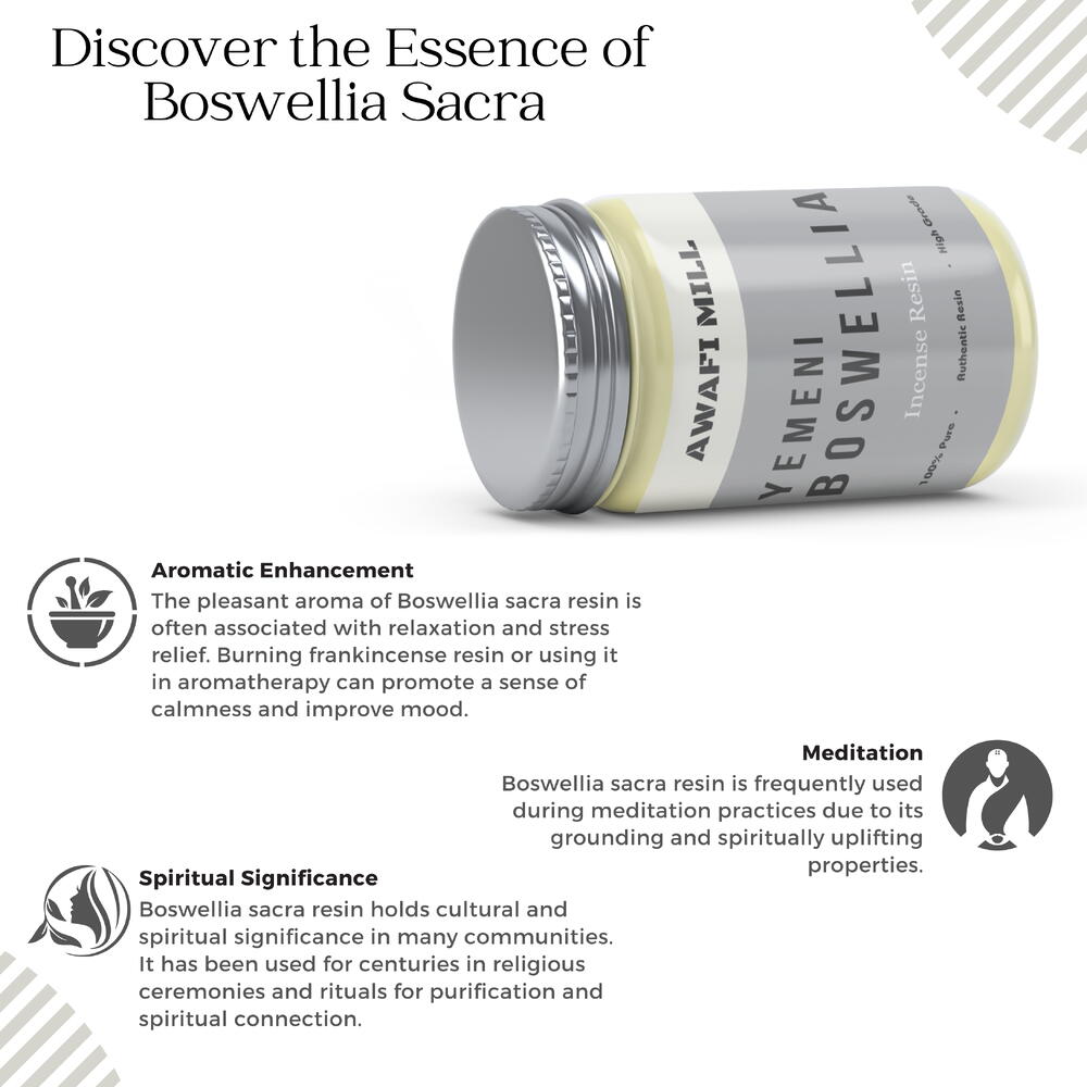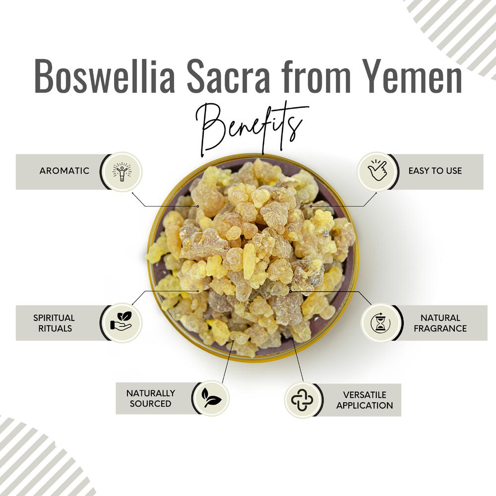 Погрузитесь в атмосферу королевской роскоши с нашей благовониевой смолой Frankincense Royal, тщательно отобранной из древних деревьев Boswellia Sacra в Йемене. Эта премиальная благовонная смола, веками почитаемая за непревзойденное качество и глубокое духовное значение, приглашает вас отправиться в чувственное путешествие, достойное королей и королев. Наша благовонная смола Royal Incense Resin получена из деревьев Boswellia Sacra, известных как «священный ладан». Эти деревья произрастают исключительно в засушливых районах Йемена, что обуславливает редкость и исключительное качество смолы. Погрузитесь в богатый аромат этой благовония. Ее пленительный аромат — это гармоничное сочетание землистых, цитрусовых и древесных нот, которые перенесут вас в древние времена и священные места. Используйте эту смолу «Королевский ладан» в курильнице для получения ароматного дыма, смешивайте её с другими смолами для создания индивидуальных смесей. Йемен имеет богатую историю производства одних из самых востребованных в мире благовоний. Выбирая нашу смолу «Босвеллия Сакра», вы приобщаетесь к традиции, охватывающей тысячелетия.