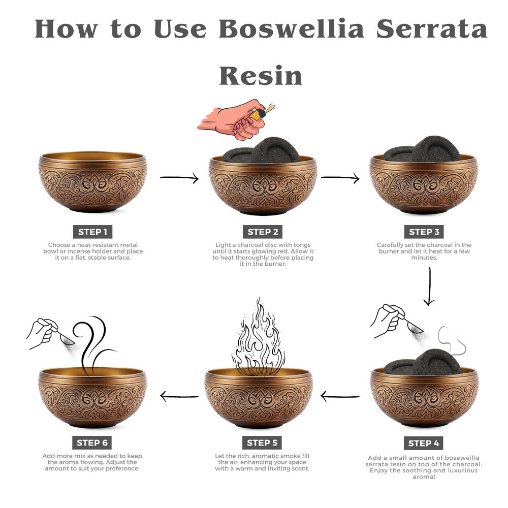 Индийская босвеллия зубчатая (boswellia serrata) - высококачественная смола, известная своим богатым и чарующим ароматом Окунитесь в безмятежную и вдохновляющую атмосферу, которая улучшит ваши духовные практики Гарантируя, что вы получите высококачественный продукт, который излучает подлинность и чистоту К каждой упаковке прилагается дополнительная таблетка древесного угля